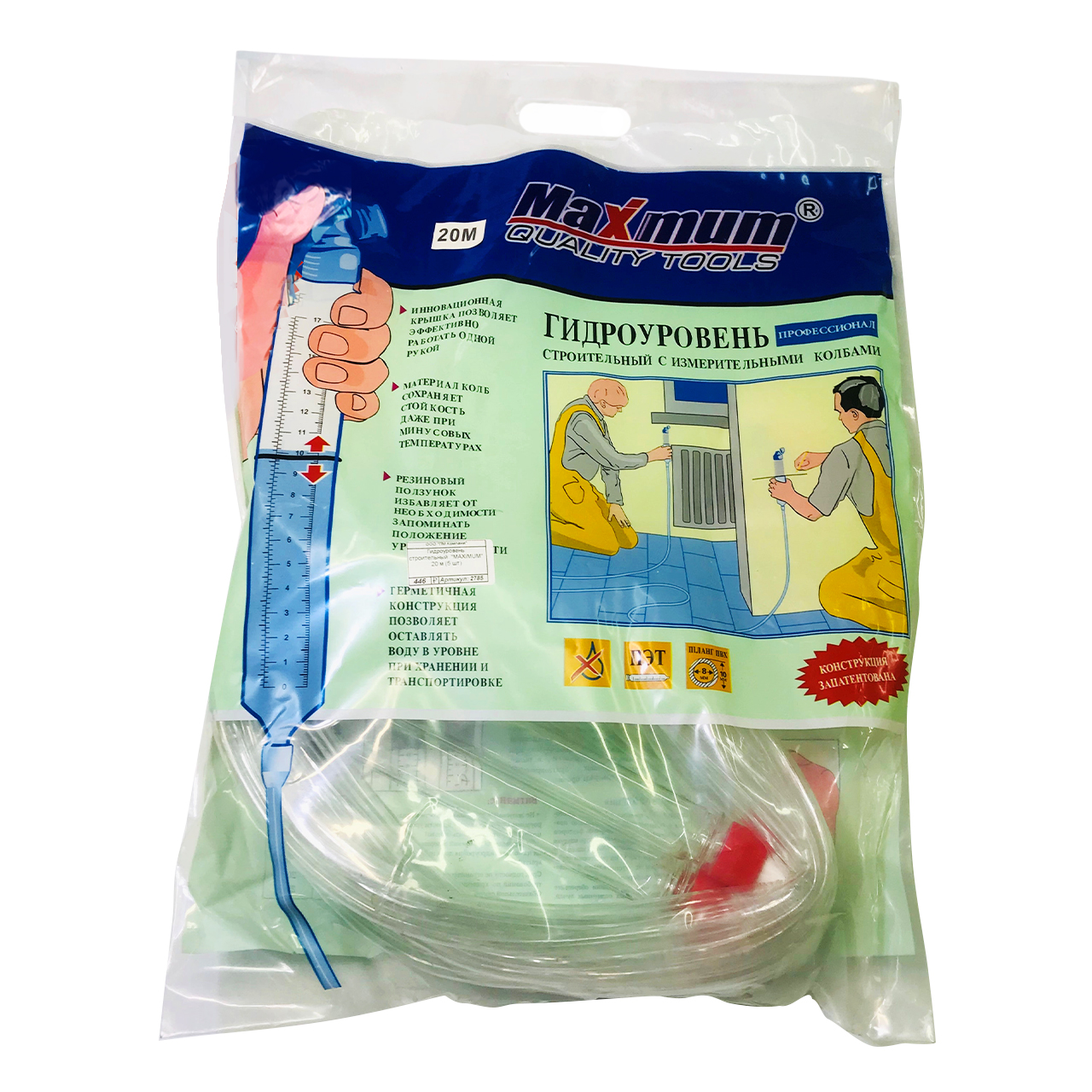 Строительный гидроуровень 20 метров из серии Профессионал от «Maximum» используется для точного контроля и измерения поверхностных элементов конструкции в горизонтальной плоскости.