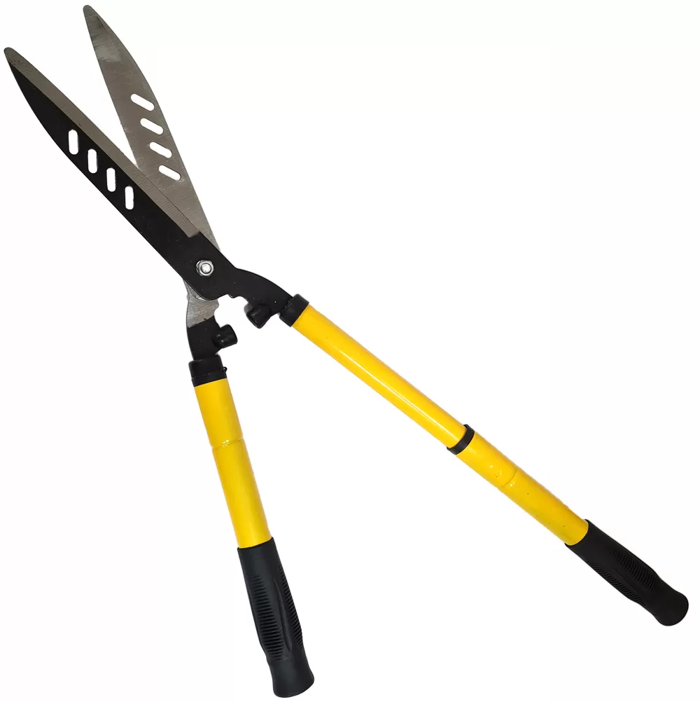 Садовые ножницы для кустов — практичный инструмент для обрезания лишней растительности на садовом участке. Длину рукояток можно регулировать, что удобно, когда нужно обработать труднодоступный объект.